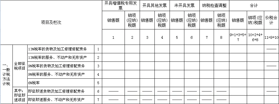 《增值稅納稅申報(bào)表附列資料(一)》(本期銷售情況明細(xì))