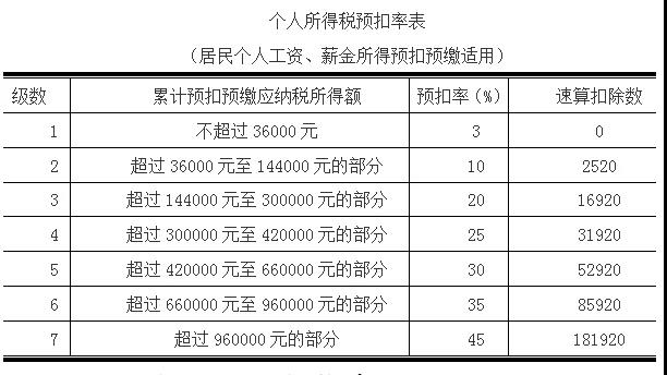 在計算之前我們要了解居民個人工資、薪金所得應(yīng)納稅額的計算公式和個人所得稅預(yù)扣率表。如下
