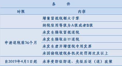 自2019年4月稅款所屬期起,連續(xù)六個月(按季納稅的,連續(xù)兩個季度)增量留抵稅額均大于零,且第六個月增量留抵稅額不低于50萬元