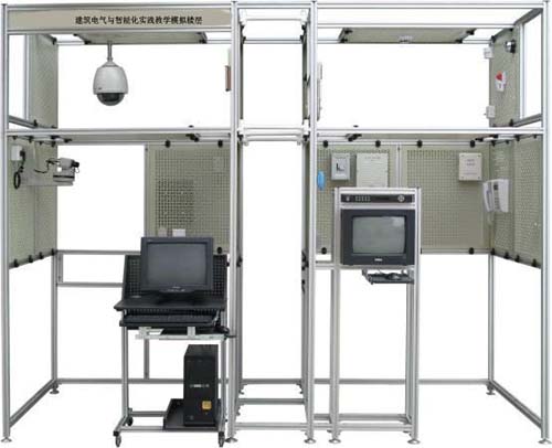 "建筑電氣與智能化實(shí)踐教學(xué)模擬樓層"是由1臺(tái)鋁合金支架和17塊網(wǎng)孔板搭建而成的兩層模擬樓宇建筑,分別模擬一棟樓宇建筑的一層機(jī)房、一層樓道、一層樓道大門、二層樓道、二層樓道窗戶、二層住戶、二層住戶大門、二層住戶窗戶、垂直豎井和建筑周邊。房間提供正反面?zhèn)葔晚攭Φ陌惭b范圍,可在上面安裝各種樓宇智能化器件;同時(shí)還提供房間大門和窗戶,可在上面安裝電插鎖、電磁鎖、門磁和窗戶防盜探測(cè)器等器件,實(shí)現(xiàn)智能建筑各類系統(tǒng)的安裝與運(yùn)行,如"對(duì)講門禁及室內(nèi)安防系統(tǒng)"和"閉路電視監(jiān)控及周邊安防系統(tǒng)"等。相比于單層模擬樓層,兩層模擬樓層需要考慮智能建筑的多樓層結(jié)構(gòu)關(guān)系,除了能夠培養(yǎng)學(xué)生的工程施工能力外,更能夠培養(yǎng)其工程設(shè)計(jì)能力與工程創(chuàng)新能力,符合高等院校的實(shí)踐教學(xué)需求。
