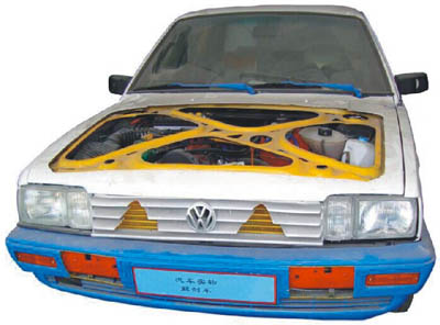 多功能解剖車選用桑塔納2000為基礎(chǔ),可容易地看見(jiàn)發(fā)動(dòng)機(jī)艙、車身側(cè)圍的構(gòu)造結(jié)構(gòu)、鋼板的厚度及獨(dú)立懸掛的結(jié)構(gòu),甚至車輪的輪轂及輪胎的橫截面。此外,車內(nèi)方向盤、排擋桿、手剎、安全帶固定裝置及安全帶卷等平時(shí)都被包裹嚴(yán)實(shí)的部件也被特別地一剖為二,內(nèi)部工藝精度、構(gòu)造清晰呈現(xiàn),能夠展示汽車各總成裝置以及各附件位置。