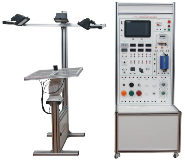 主要提供于大學(xué)、研究生、企業(yè)技工以太陽能發(fā)電為主課題的研究和培訓(xùn)。設(shè)備由模擬太陽燈、太陽能電池板、二維跟蹤機(jī)構(gòu)、光伏控制器、儲能蓄電池、負(fù)載、儀表及工控電腦等組成。