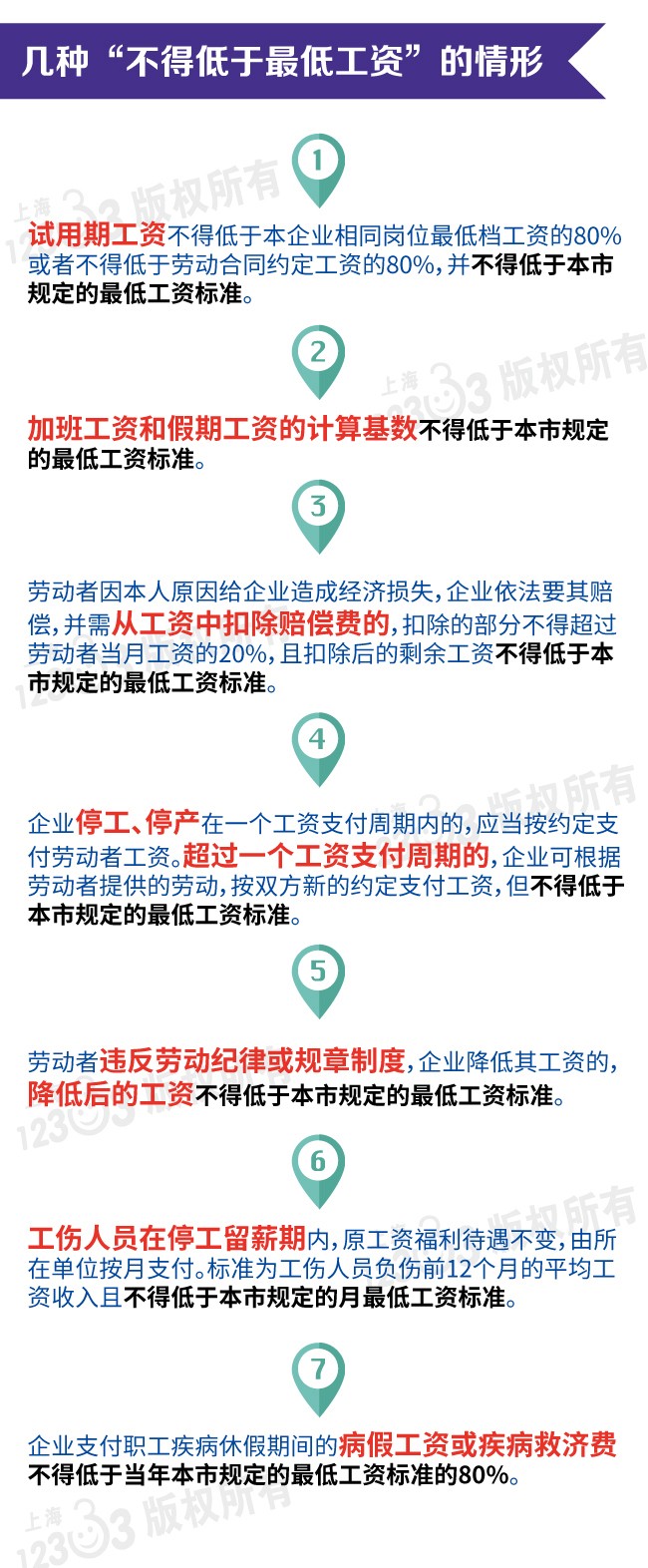 月最低工資標(biāo)準(zhǔn)適用于全日制就業(yè)的勞動者,在法定工作時間或依法簽訂的勞動合同約定的工作時間內(nèi)提供了正常勞動的,用人單位支付的月工資不能低于月最低工資標(biāo)準(zhǔn)。需要說明的是,本市月最低工資標(biāo)準(zhǔn)不含勞動者個人依法繳納的社會保險費(fèi)和住房公積金,由用人單位另行支付。勞動者延長工作時間的加班費(fèi),中夜班津貼、夏季高溫津貼及有毒有害等特殊工作環(huán)境下的崗位津貼,伙食補(bǔ)貼、上下班交通費(fèi)補(bǔ)貼、住房補(bǔ)貼也不作為月最低工資標(biāo)準(zhǔn)的組成部分,由用人單位另行支付。