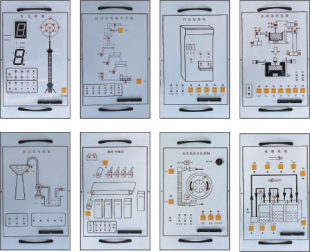 配合 PLC 可編程控制器實驗臺使用而設計的外接演示裝置。它由 LED 發(fā)光二極管、大型 LED 數(shù)碼管、直流電機、步進電機等執(zhí)行機構用其他外圍電路模擬實際工業(yè)控制過程中的狀態(tài),它形象生動的演示了 PLC 的整個執(zhí)行過程。通過該裝置,可以鍛煉學生的動手能力,能夠形象生動的執(zhí)行機構驗證自己編寫程序的正確性,掌握 PLC 的實際應用,增強學生對 PLC 的學習興趣。該裝置在演示屏上位置可任意移動、互換。